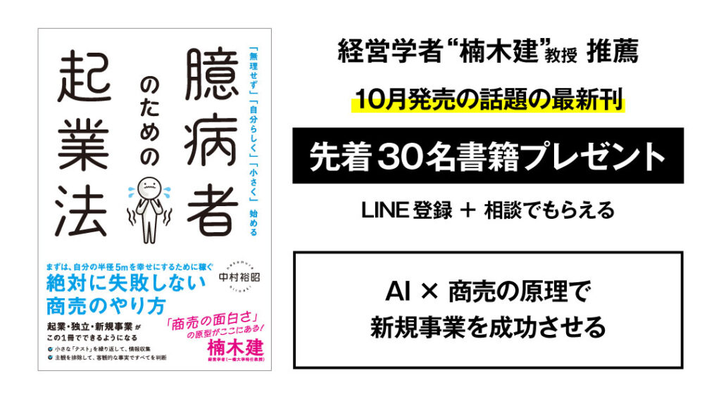 2025年10月に発売された最新刊 『臆病者のための起業法』 を無料でプレゼントいたします。